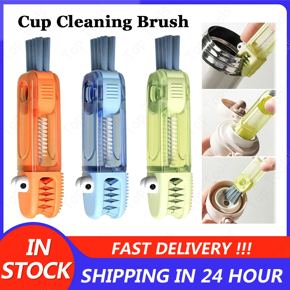 Tazas y termosCepillo de limpieza 3 en 1 (1/3 unidades): Limpiador multiusos para tapas de botellas de agua y vasos. Incluye un adorable diseño de cocodrilo comiendo.