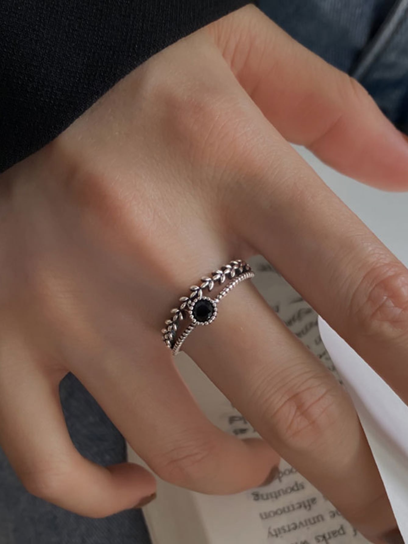 1 pieza Anillo de moda S925 plata esterlina negro zirconia cúbica con diseño de hoja ajustable