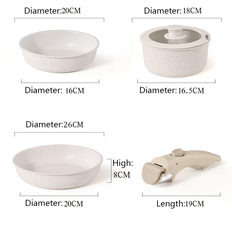 3/5 unids/set ollas y sartenes para freír juego de utensilios de cocina antiadherentes con asas extraíbles juego de cocina de inducción RV con asas extraíbles
