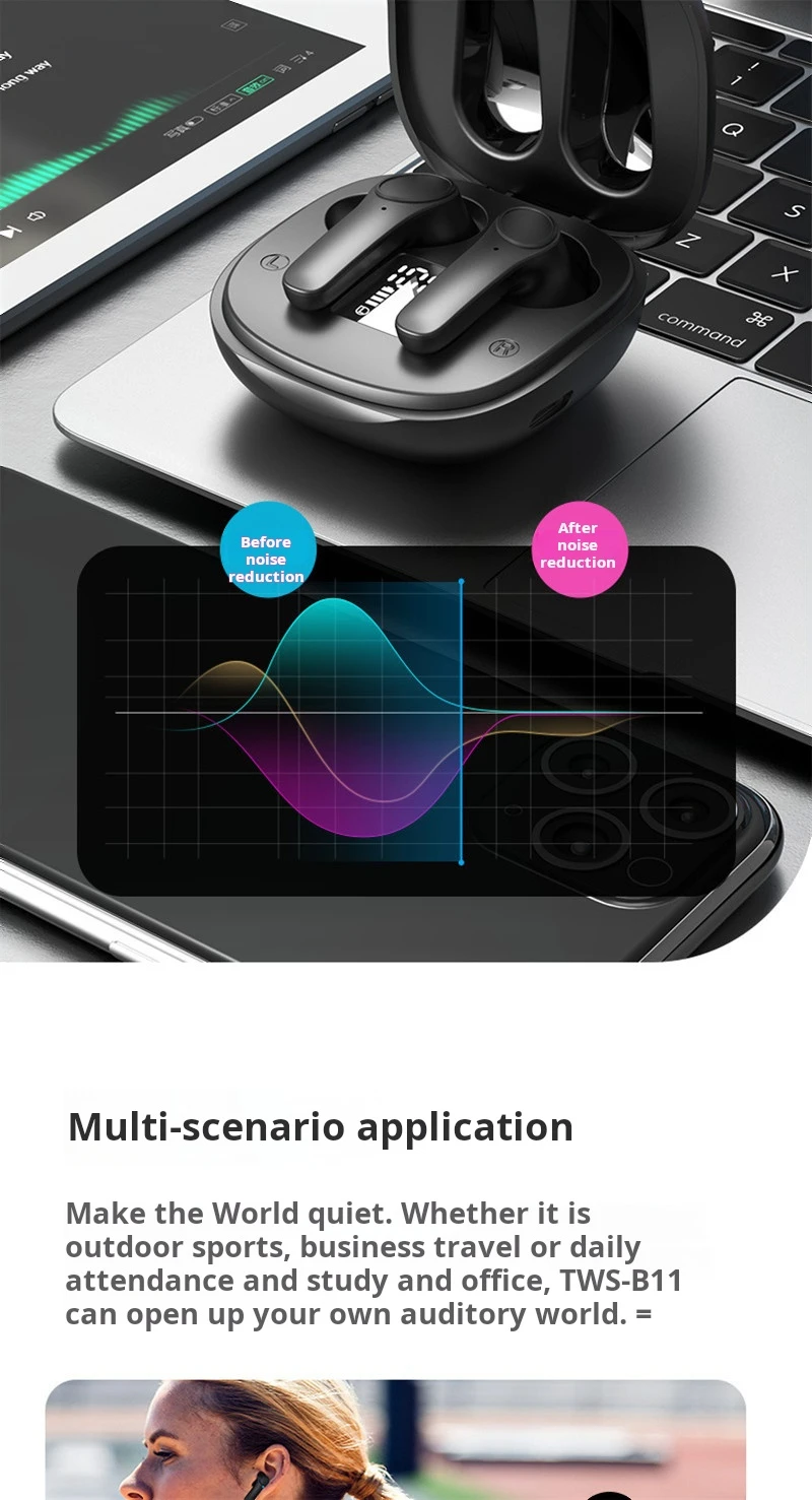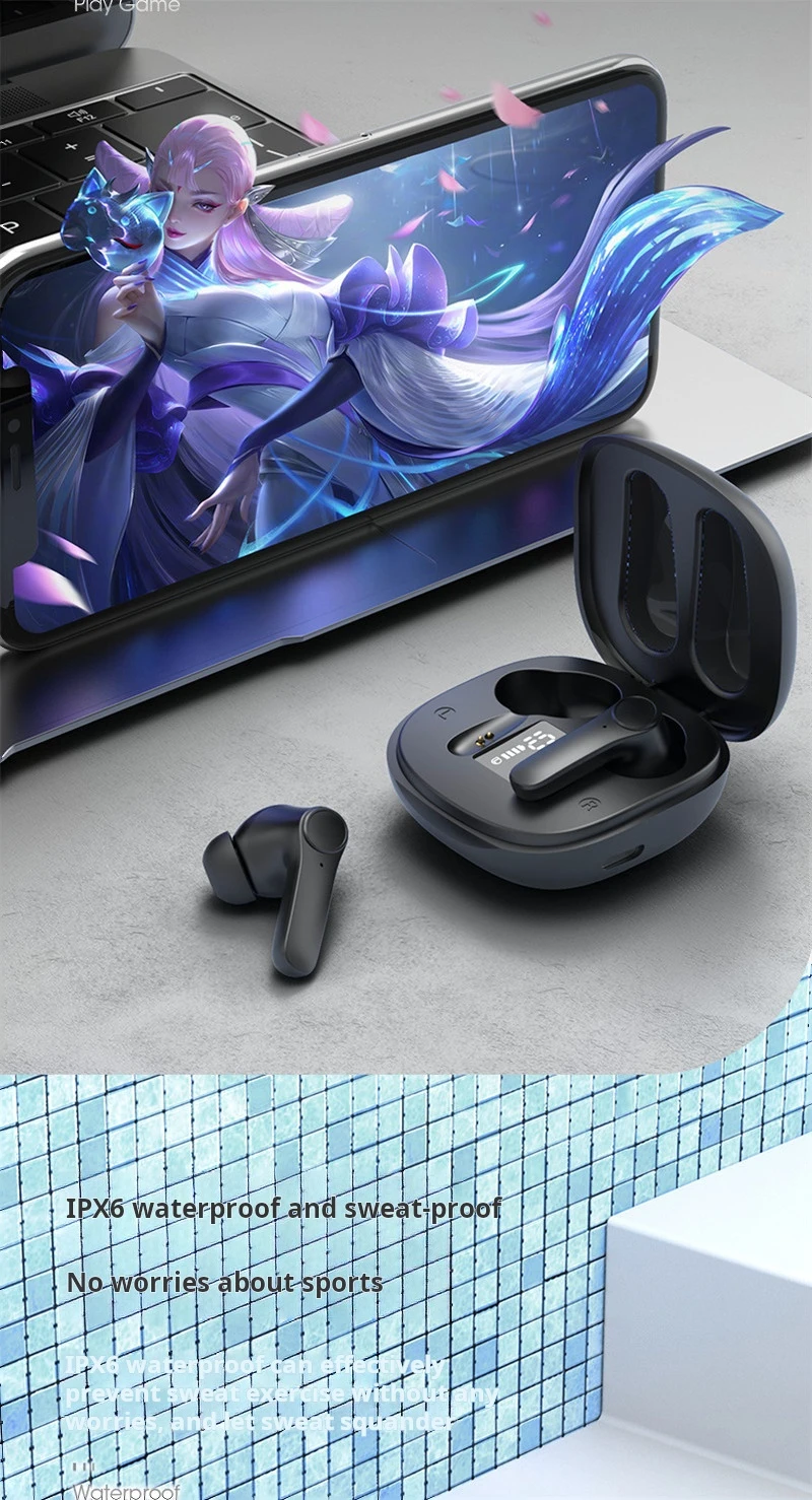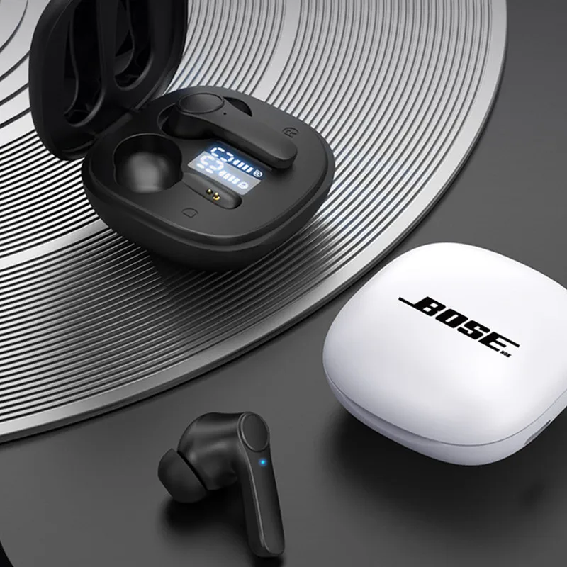 Auriculares inalámbricos táctiles inteligentes, cascos de graves impermeables con pantalla de batería, deportivos, con micrófono y tapa abatible con logotipo