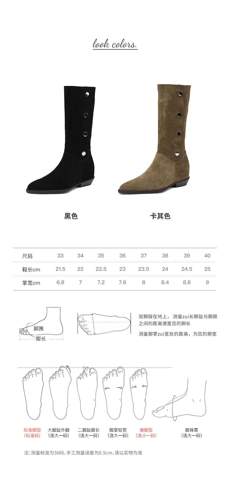 | Altura de la bota | Mitad de la pantorrilla |