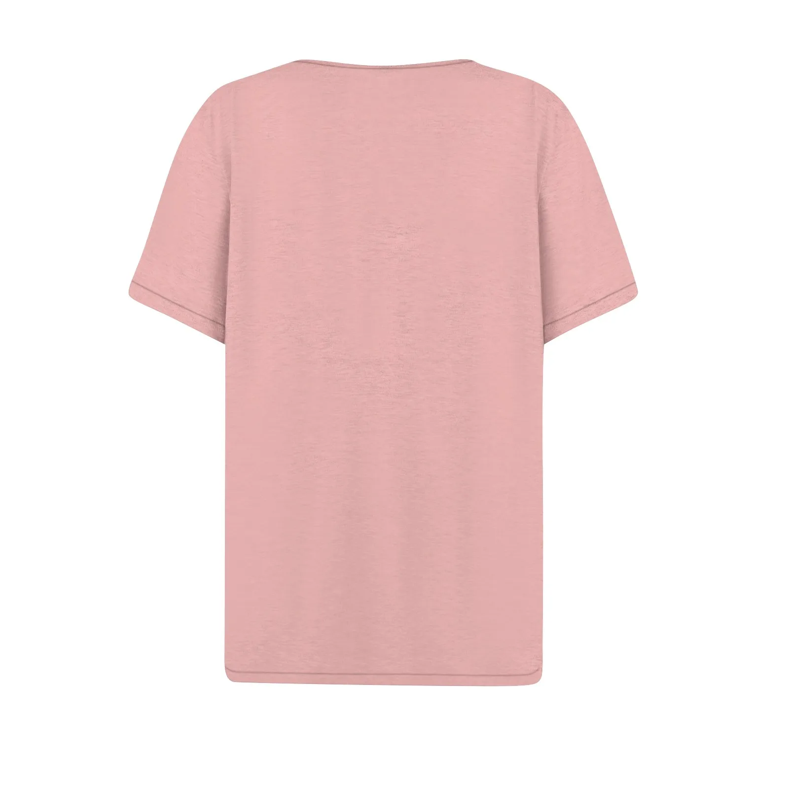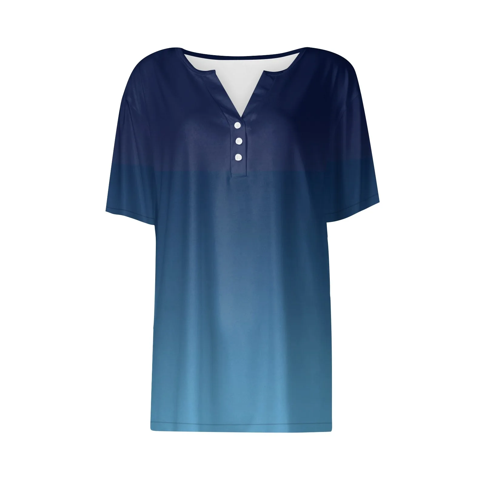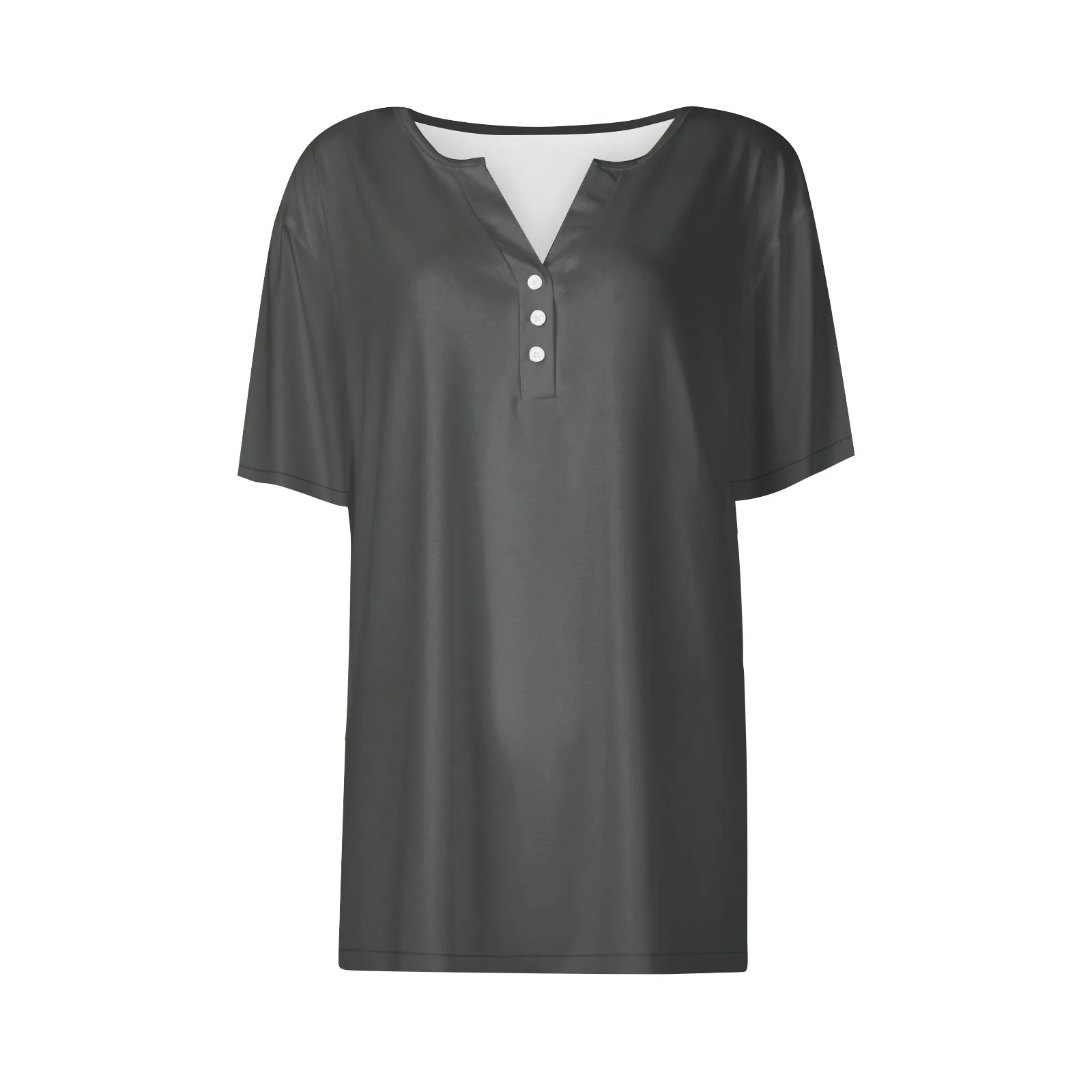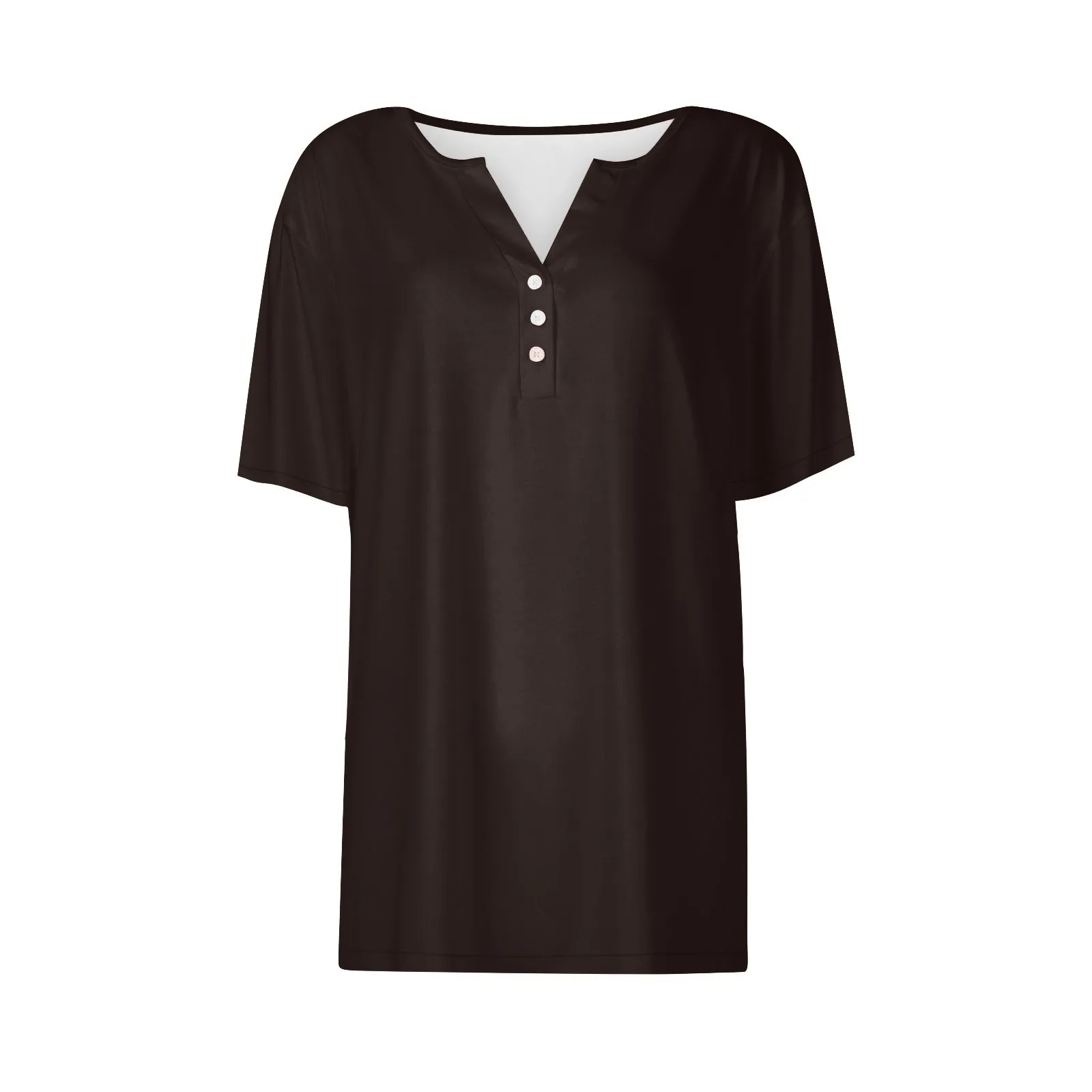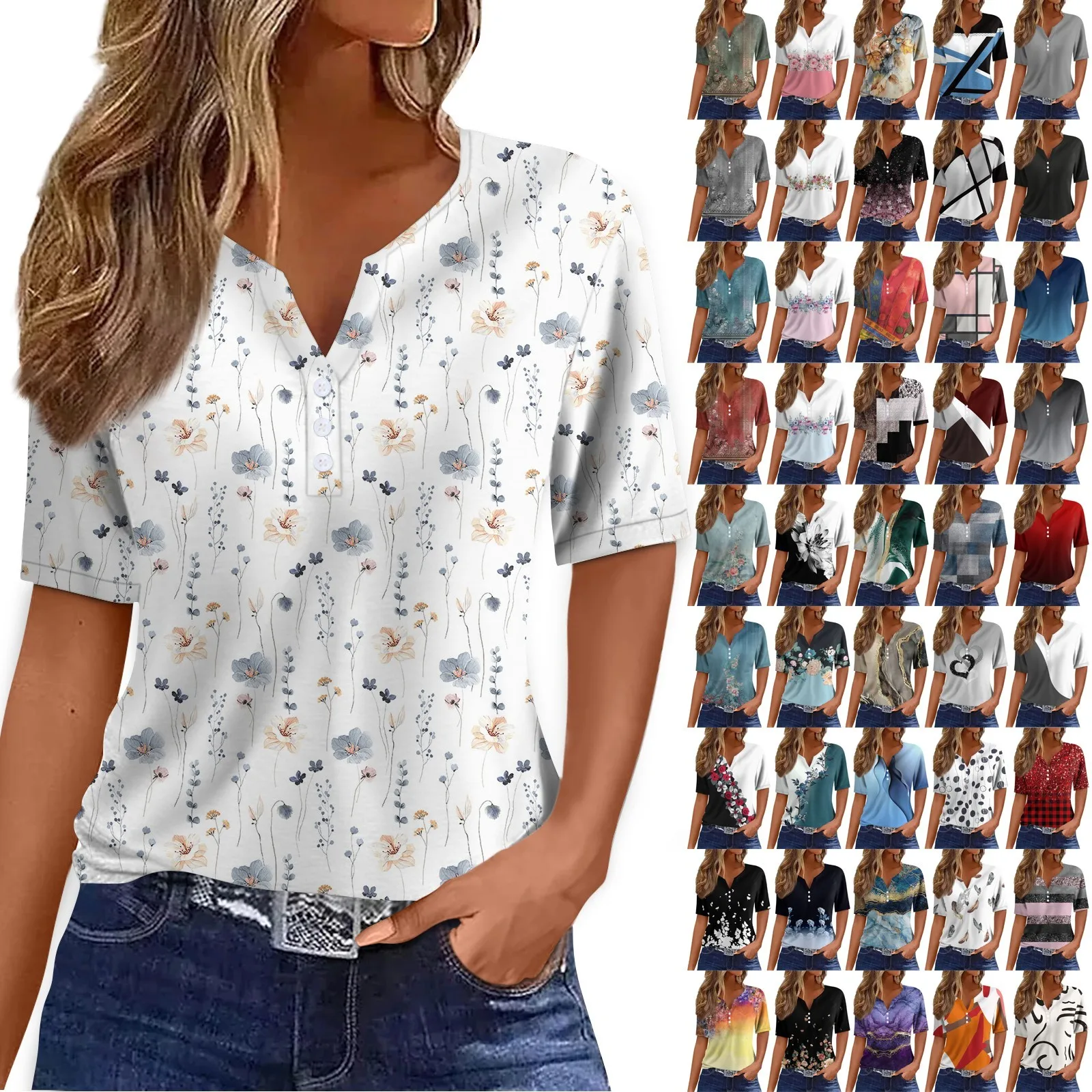Camiseta de mujer Camiseta con estampado de botones Manga corta Fin de semana diario Moda Básica Cuello en V Top regular