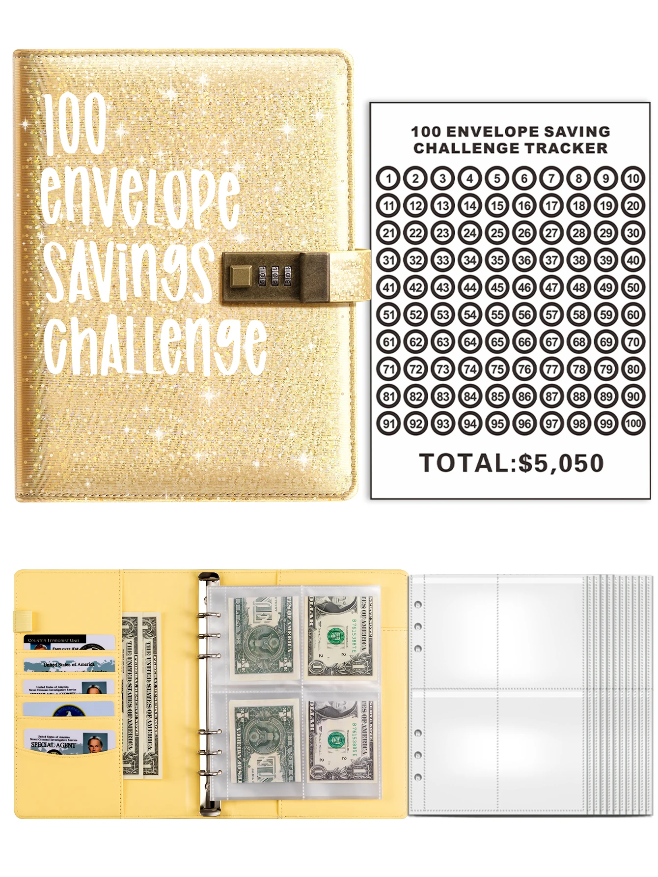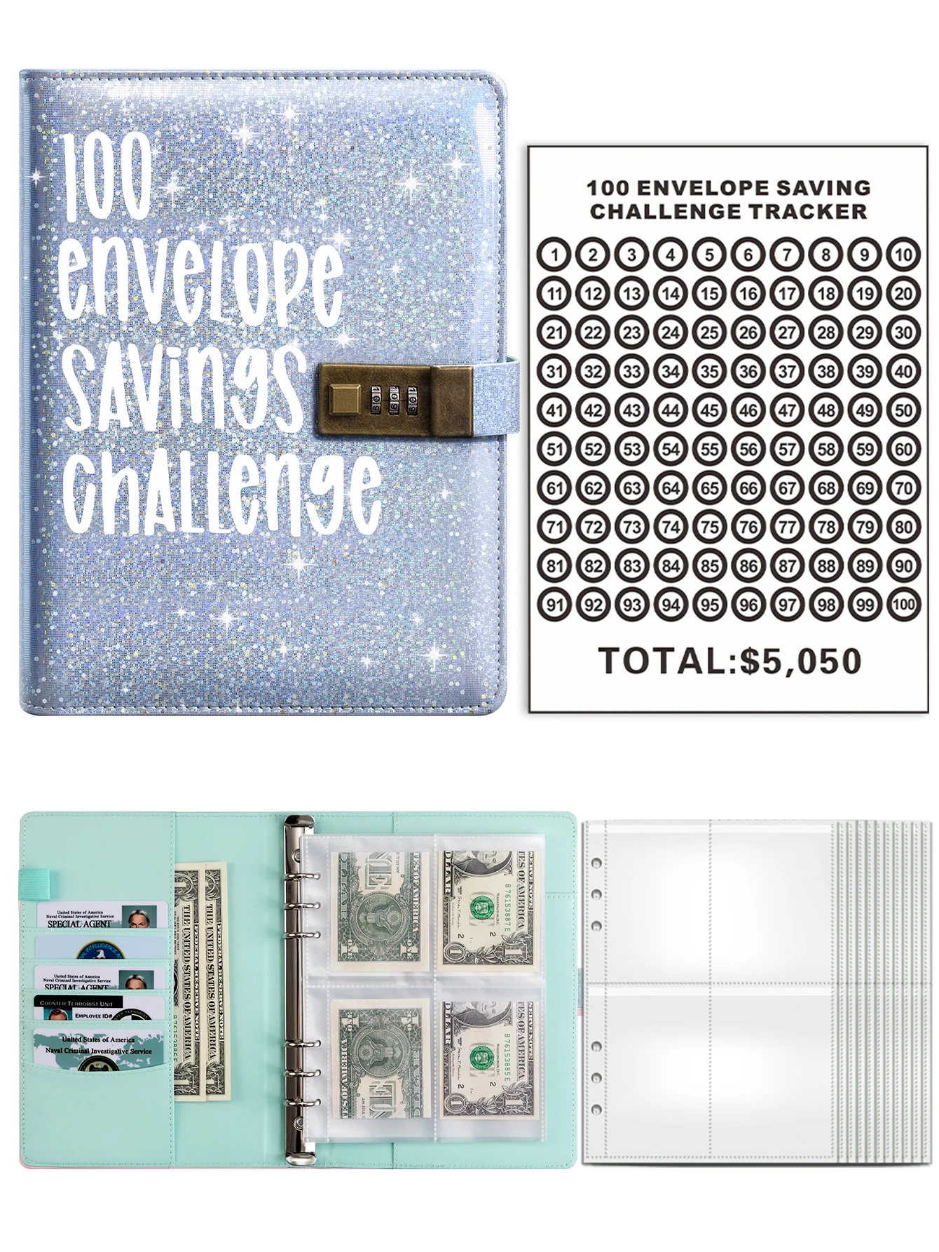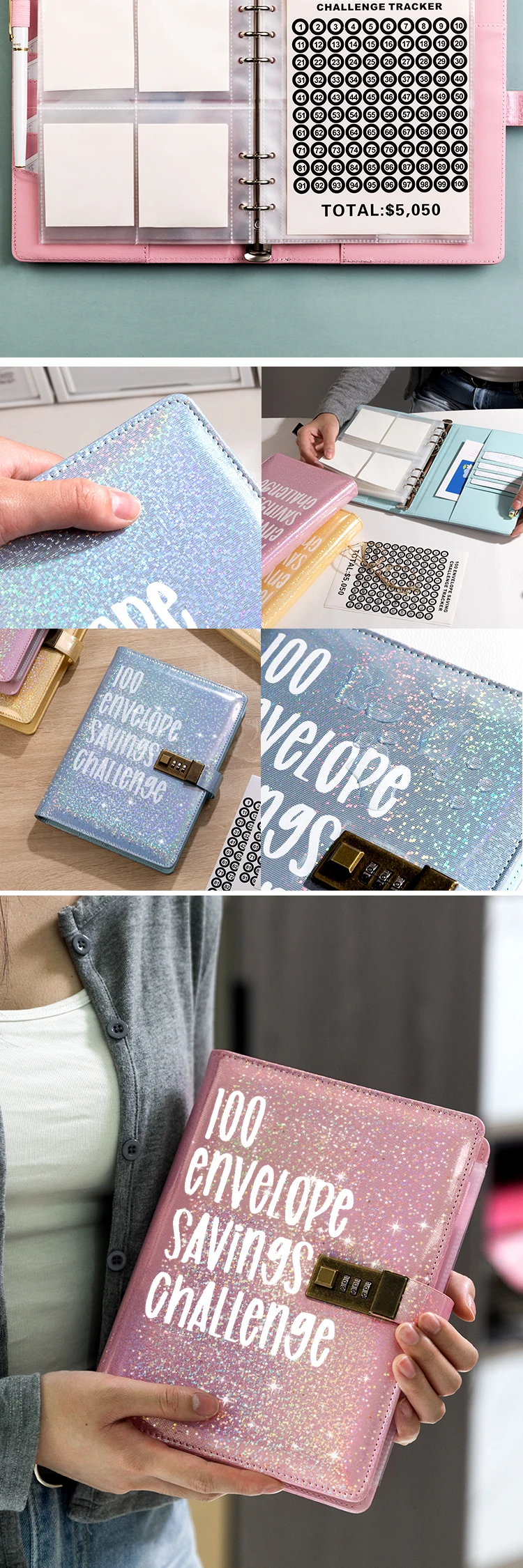 Carpeta de ahorro de dinero A5, libro planificador de presupuesto de ahorro de dinero con sobres en efectivo, 100 sobres