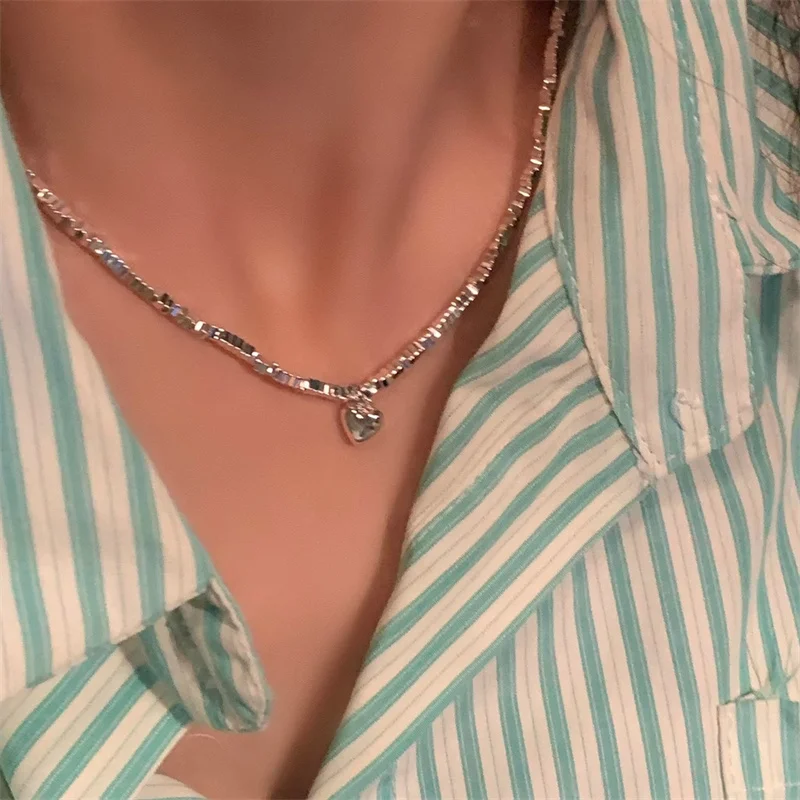 Collar con colgante de corazón de plata roto Irregular para mujer, gargantilla de cuello corta Bohemia, joyería de moda