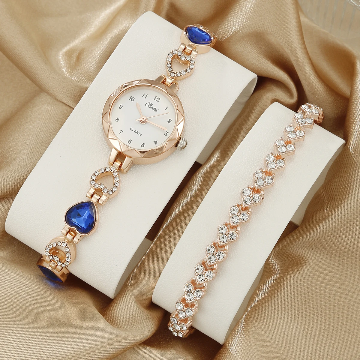 Conjunto de 2 piezas de reloj de lujo para mujer, pulsera de diamantes de imitación, relojes casuales para mujer, conjunto de reloj de pulsera