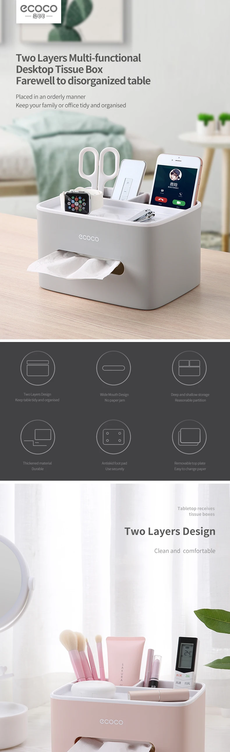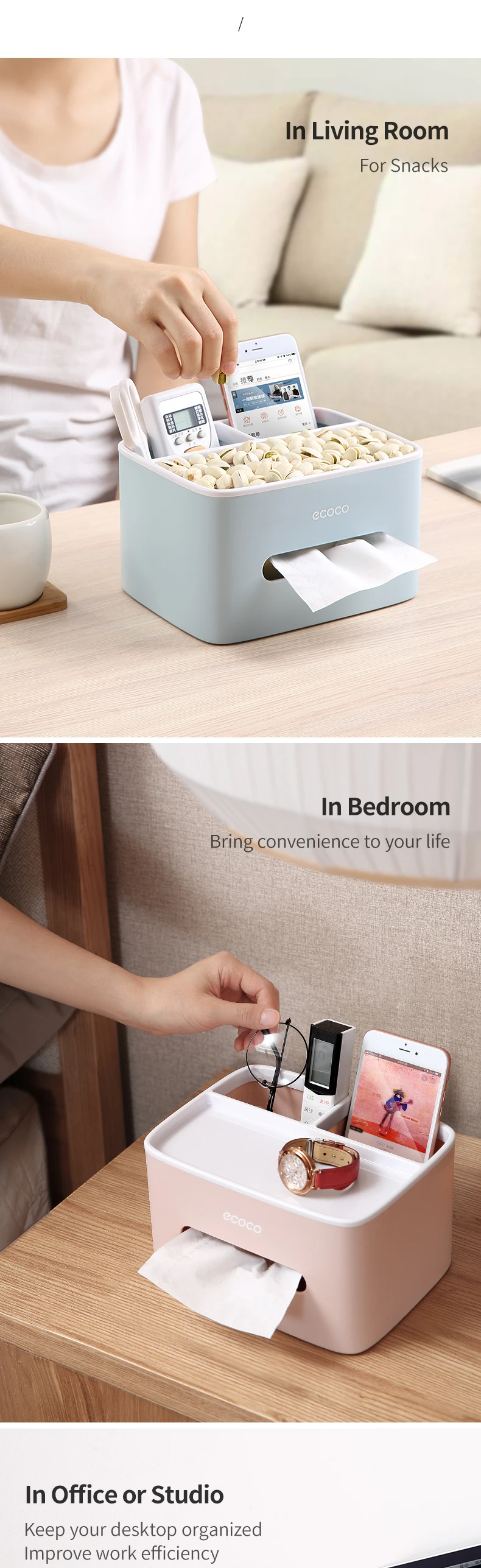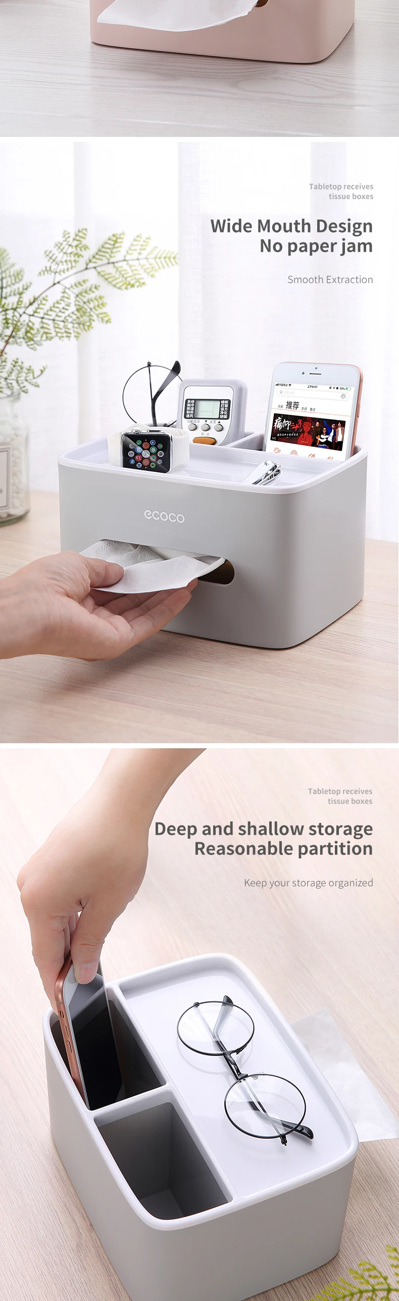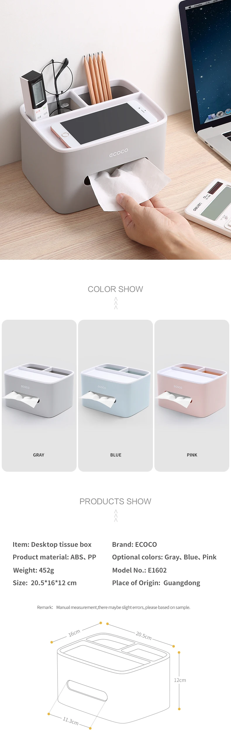 ECOCO-caja de pañuelos con Control remoto para el hogar, cajón de lujo con luz Simple y creativa, multifunción, para sala de estar y comedor
