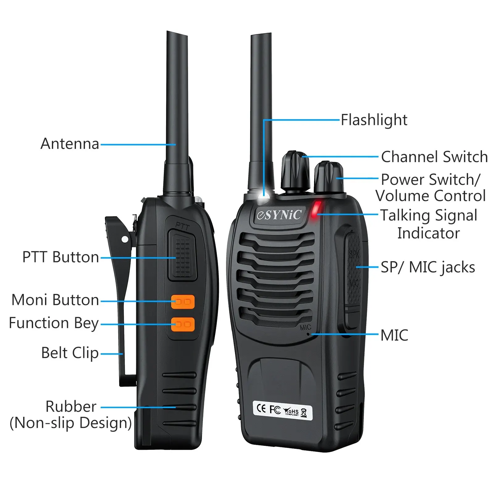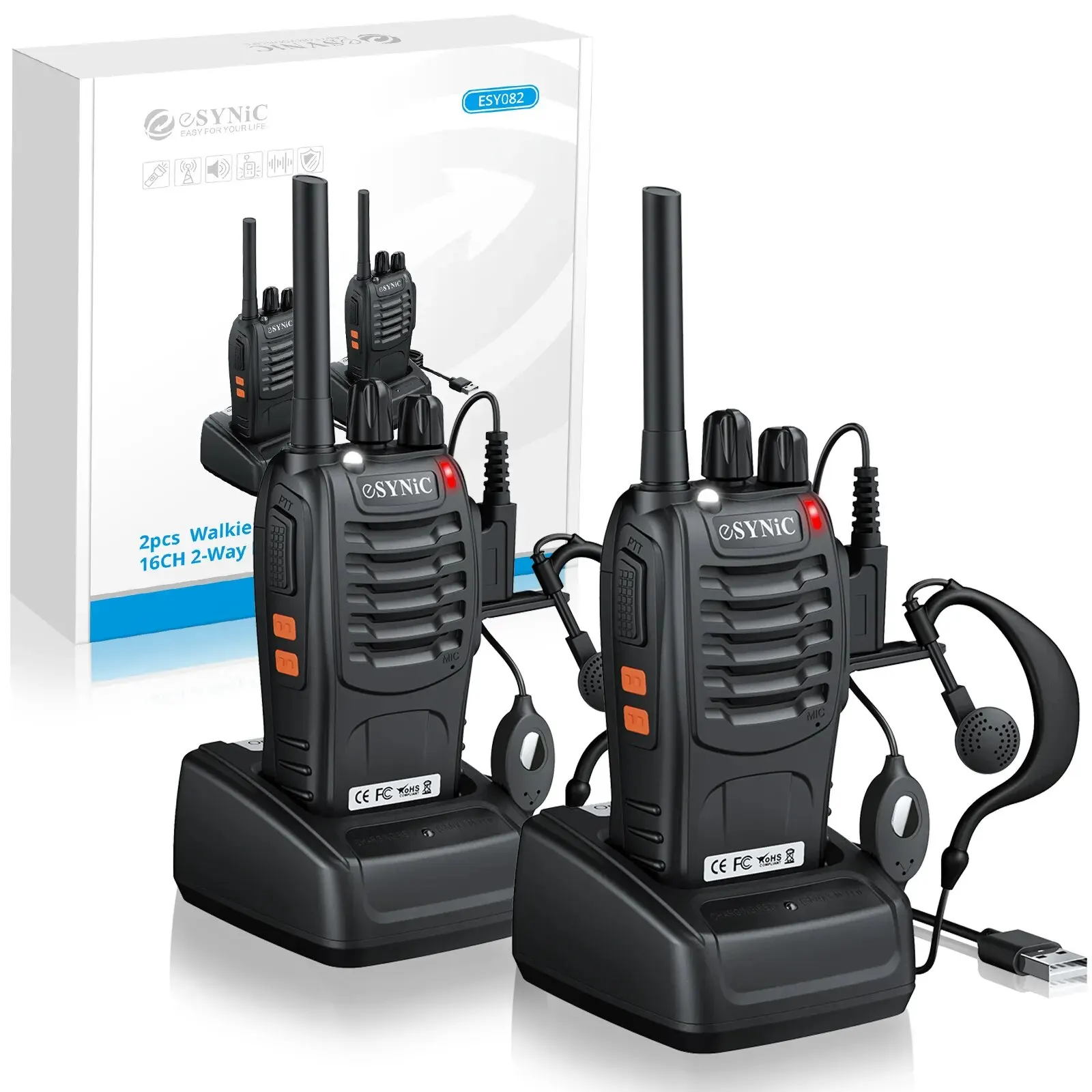 ESYNiC-Walkie Talkies recargables para exteriores, Radio de 2 vías, PMR446, sin licencia, linterna LED VOX, manejado, 16 canales