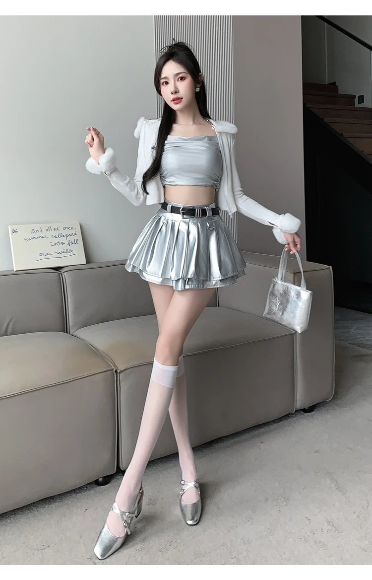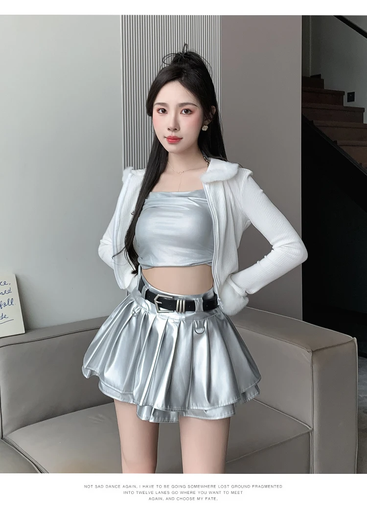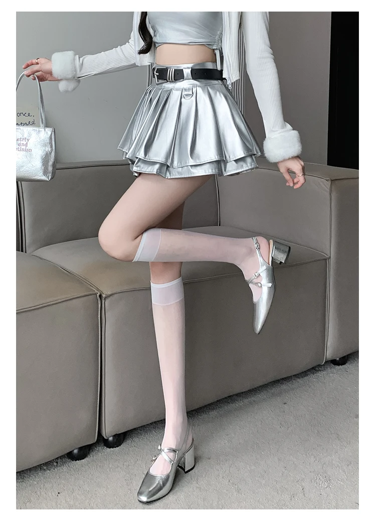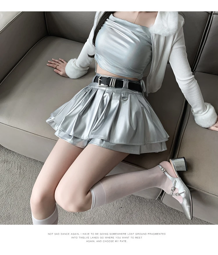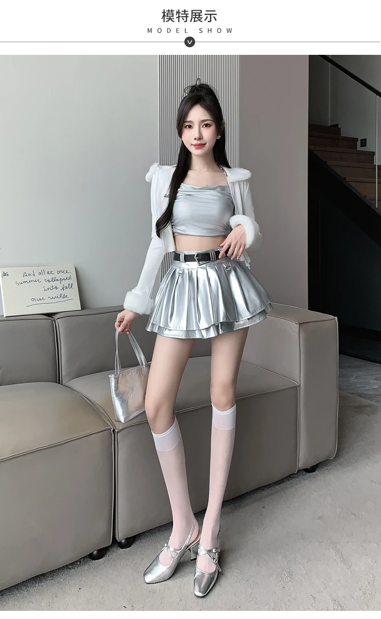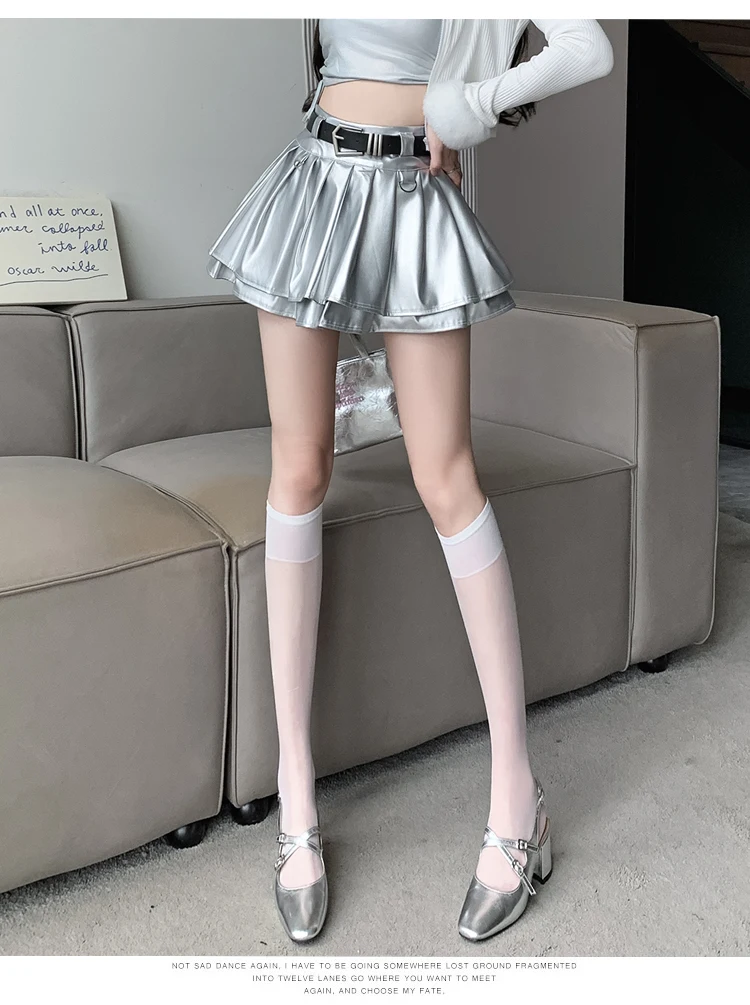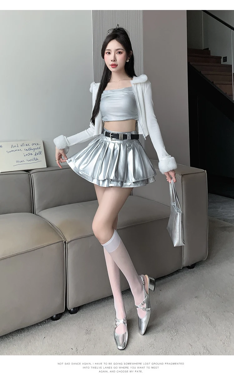 Sea el primero en opinar “Falda plisada de cuero Pu con cinturón para mujer, vestido de baile de cintura alta, línea A delgada, color negro, otoño e invierno”