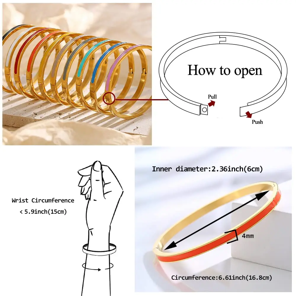 Flashbuy-Pulseras de acero inoxidable con esmalte colorido para mujer, accesorios clásicos de la amistad, regalo para adolescentes, 4mm