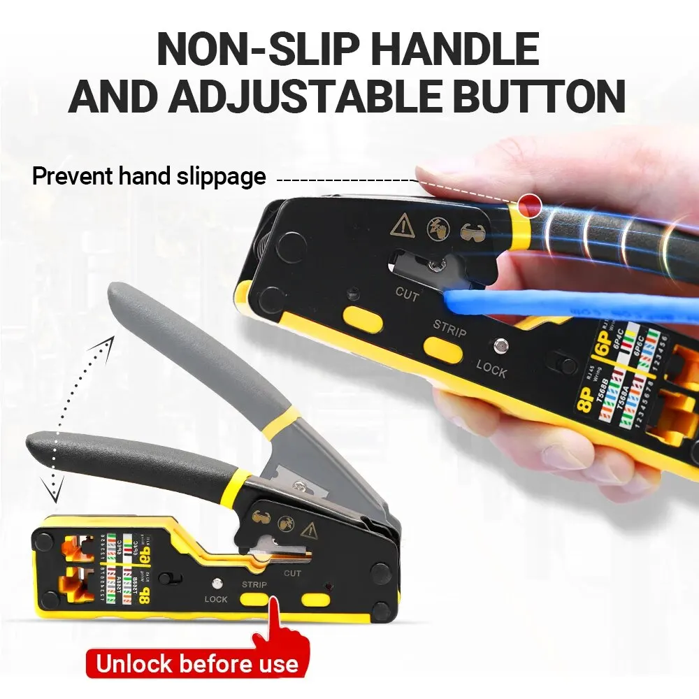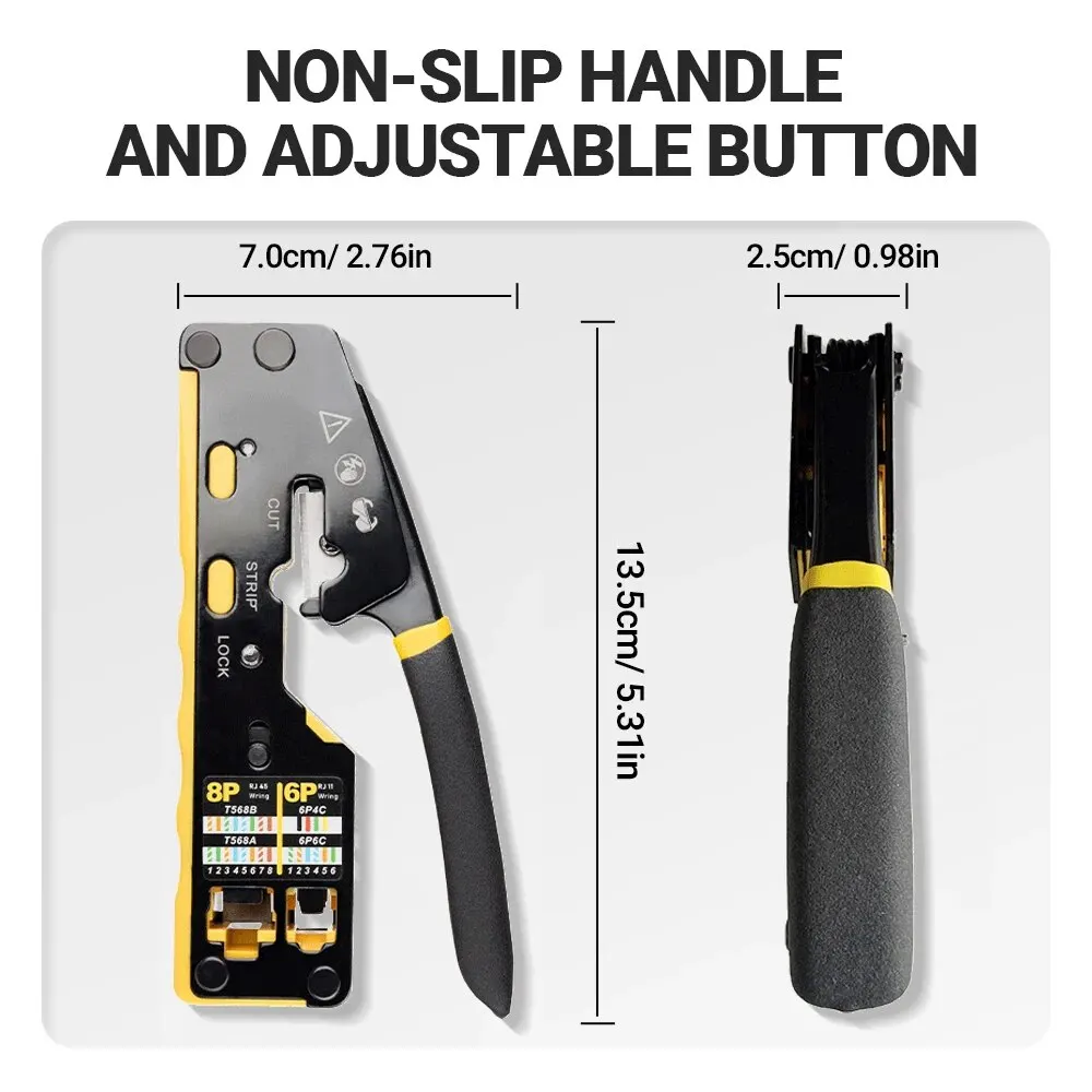 • Alta compatibilidad:Este arrugador del cable es compatible con una amplia gama de cables incluyendo el Lan CAT8/7/6A/6/5E (STP/UTP) y los cables modulares del teléfono RJ11/12, por lo que es una herramienta versátil para diversas necesidades de redes.