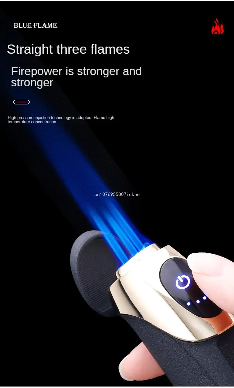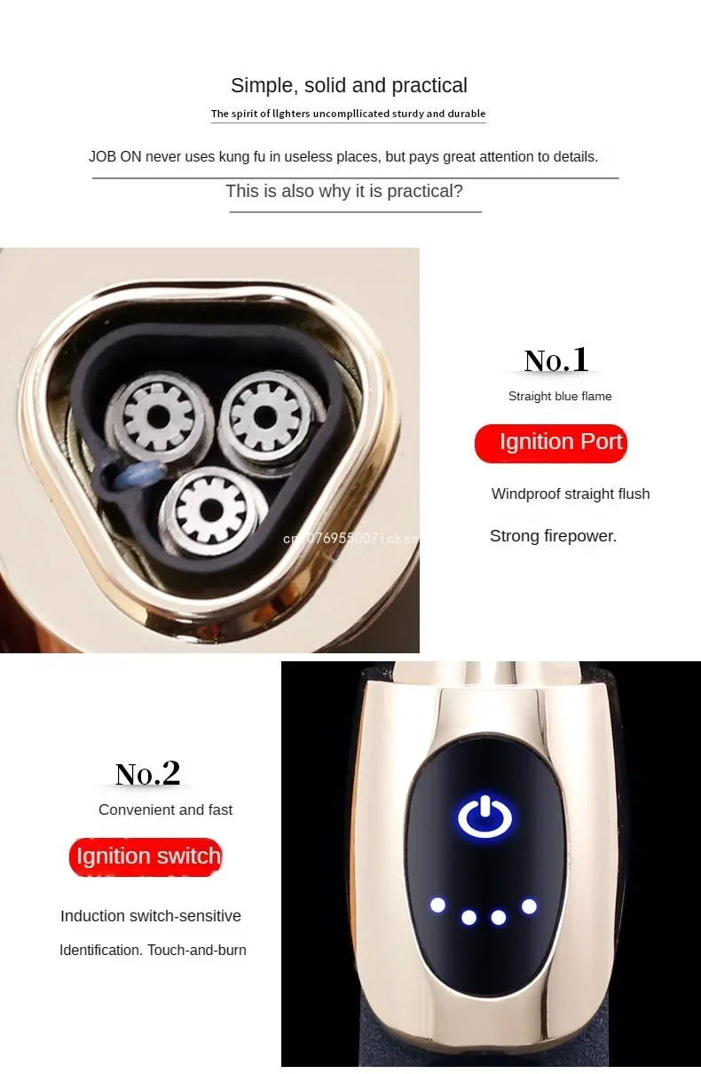 JOBON-encendedor híbrido de Gas recargable de alta gama, llama azul de tres rectos, encendedor de cigarros táctil