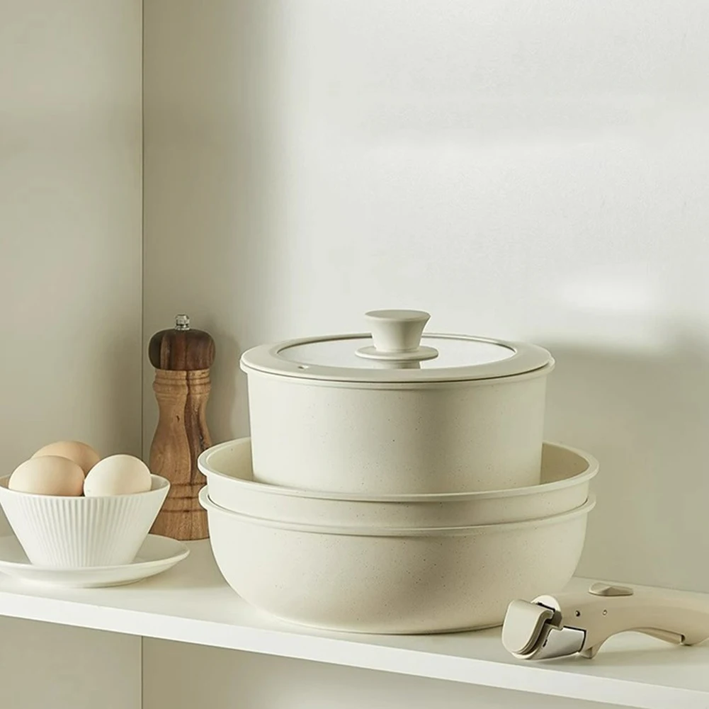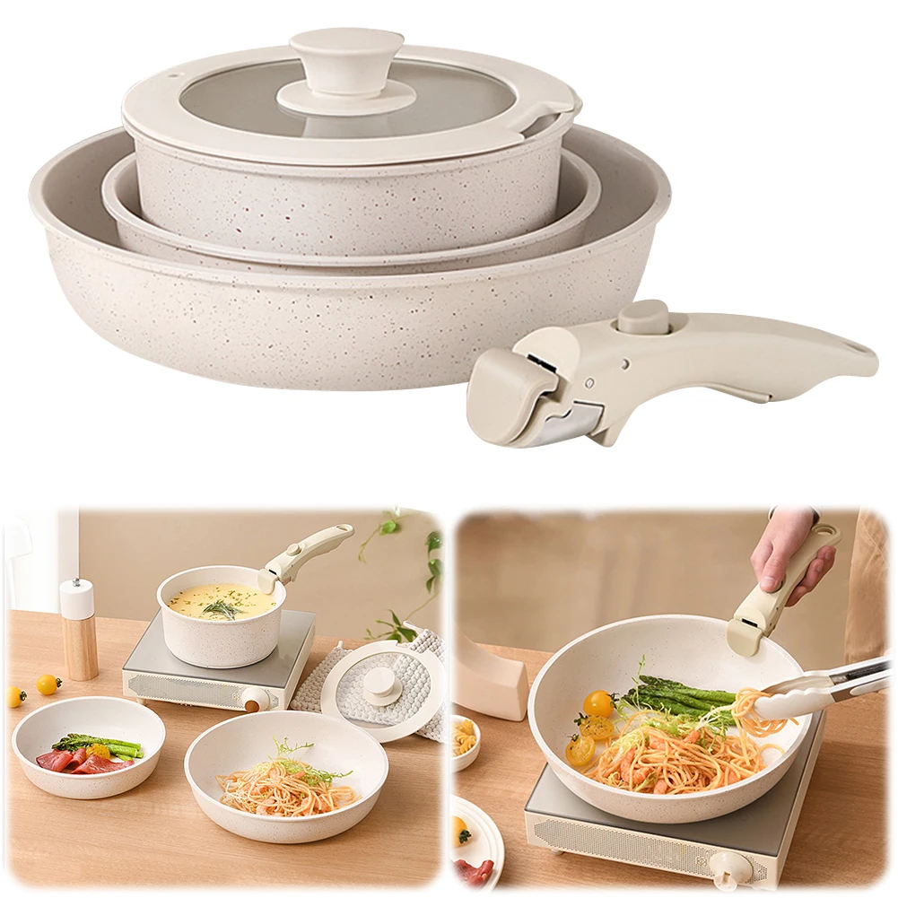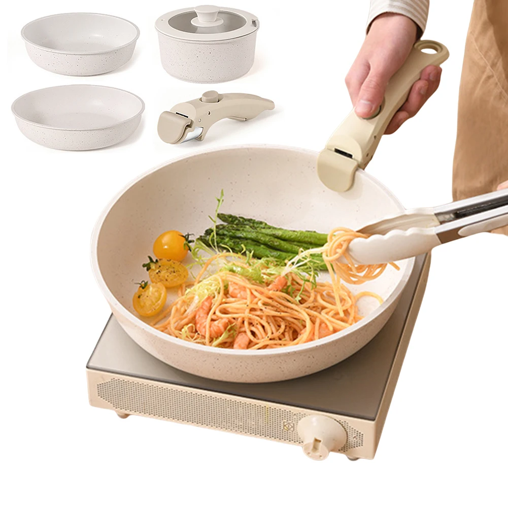 Juego de ollas y sartenes antiadherentes con mango desmontable, juego de utensilios de cocina apilables, juego de sartén y cacerola para cocina casera