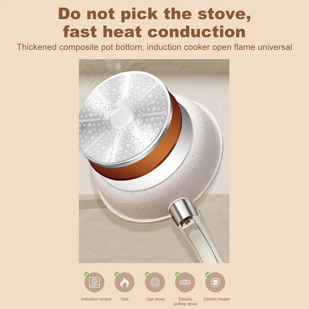 2.Seguro y ecológico:Cocine con confianza utilizando nuestro juego de ollas y sartenes antiadherentes que no contiene PFOA ni otros productos químicos nocivos.Disfrute de la tranquilidad de saber que sus utensilios de cocina están diseñados pensando en la seguridad, presentando una tecnología antiadherente única que garantiza una liberación fácil y duradera de los alimentos.