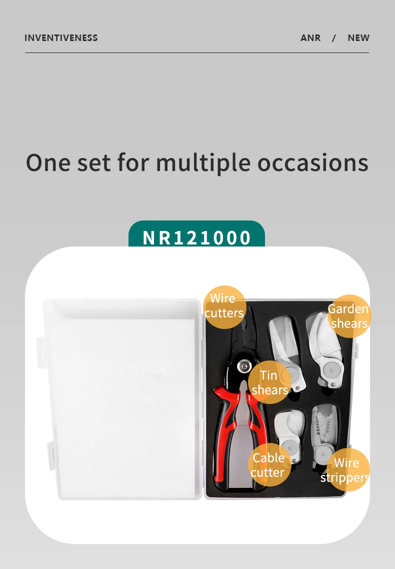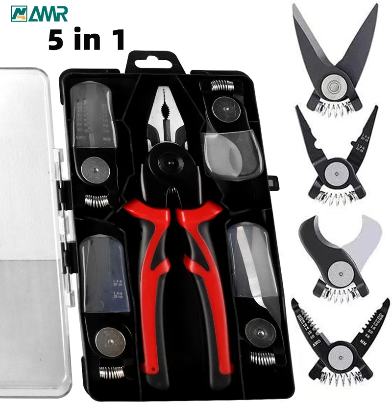 - Kit de herramientas de alta resistencia versátil 5 en 1: con una variedad de alicates intercambiables, este juego es adecuado para una amplia gama de tareas. Ahorra espacio en tu caja de herramientas al tener todas las herramientas necesarias en un práctico conjunto.