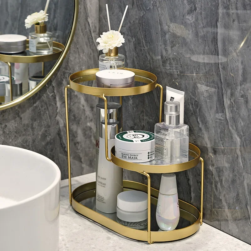 Hogar, Muebles y Jardín, OrganizaciónEstante de encimera de hierro forjado de lujo ligero para almacenamiento, organizador de cosméticos, artículos de tocador y productos para el cuidado de la piel y el baño.