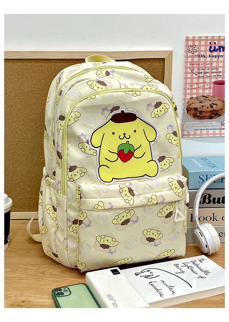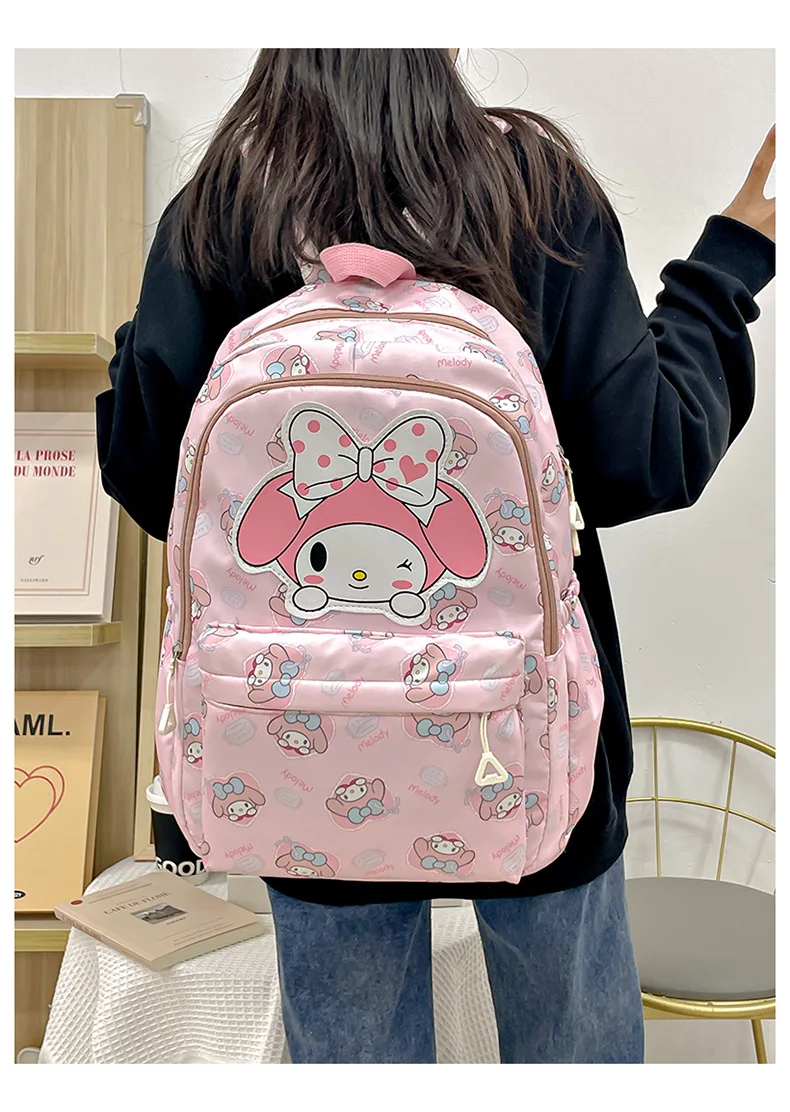 Mochila de gran capacidad Sanrio Kuromi Melody Cinnamoroll para niños y niñas, Bolsa Escolar de lona Kawaii con dibujos animados de Hello Kitty, 2024