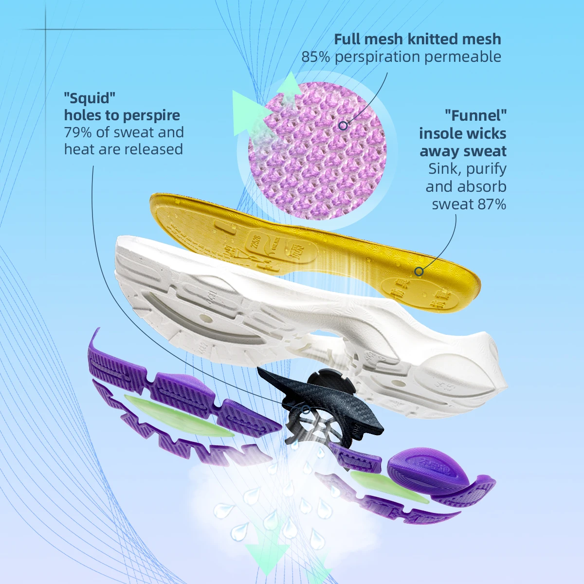 El cojín de aire en la suela antideslizante se mantiene firme y seguro en el escenario
