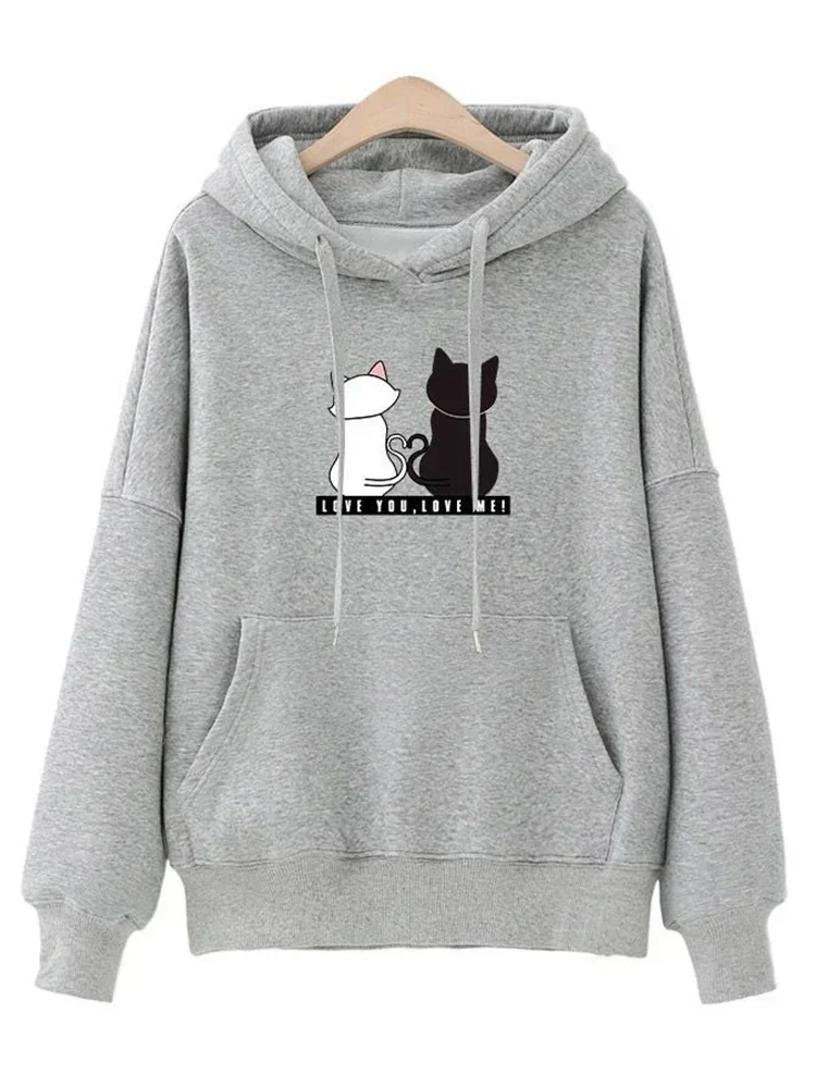 Sudadera con capucha de manga larga para mujer, ropa de calle Harajuku con estampado de gato, otoño