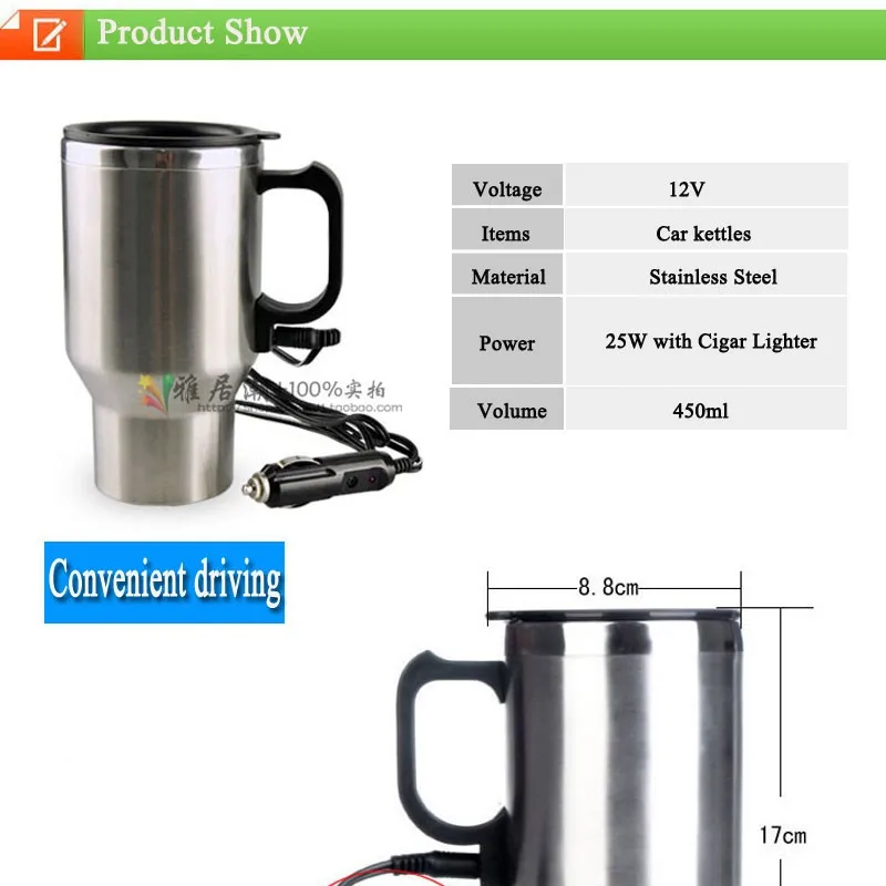 Stainless Stell 12V Car Heating Cup Electric Kettle Cars Thermal Heate