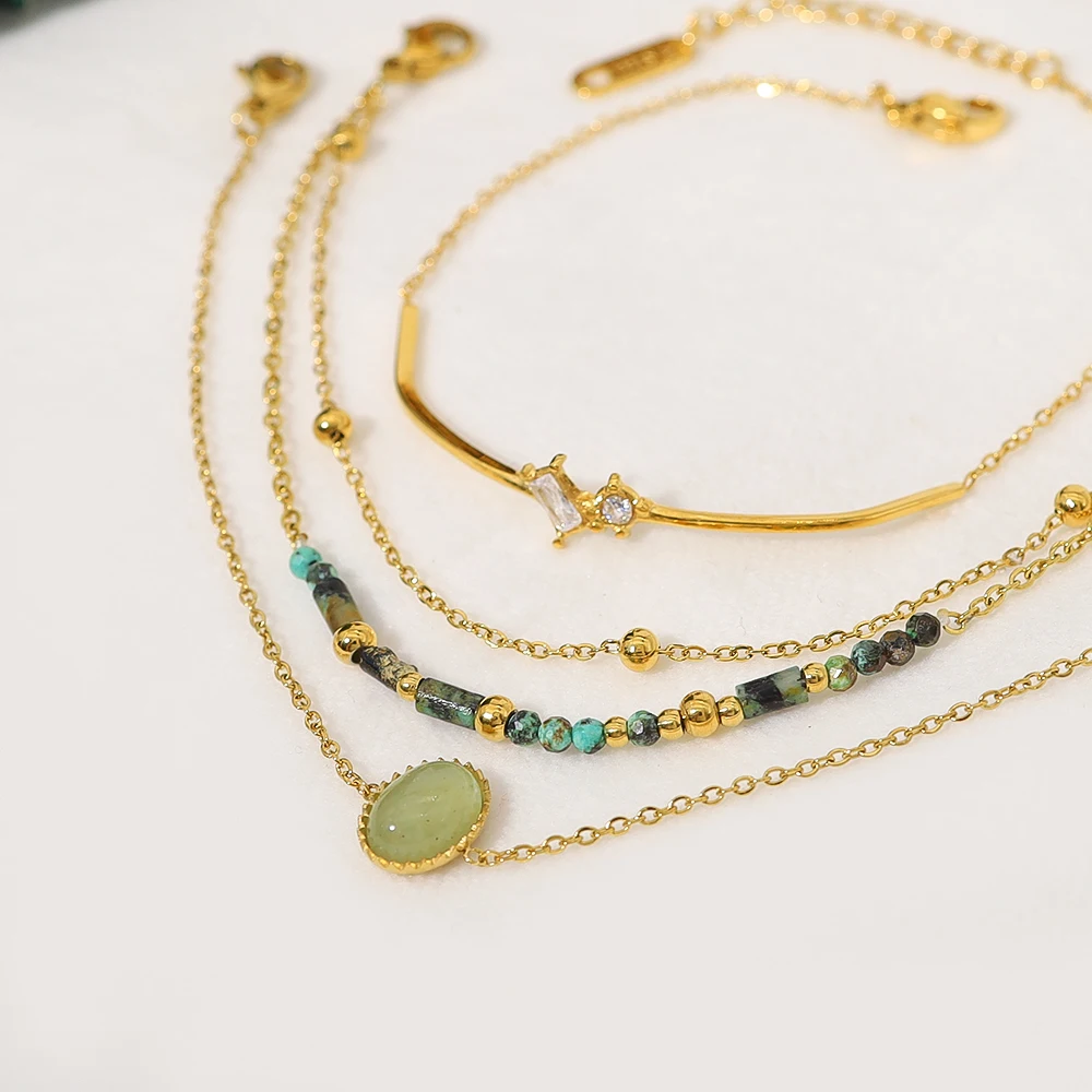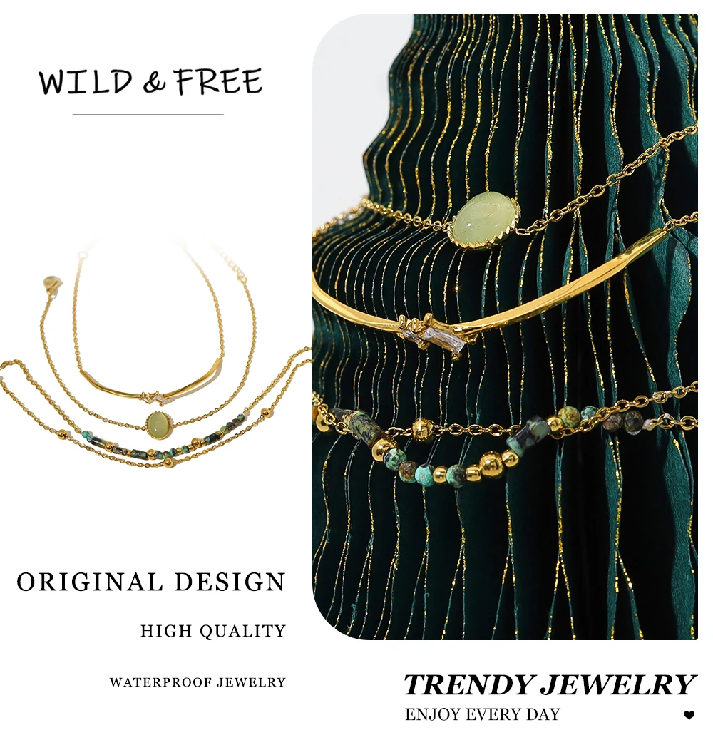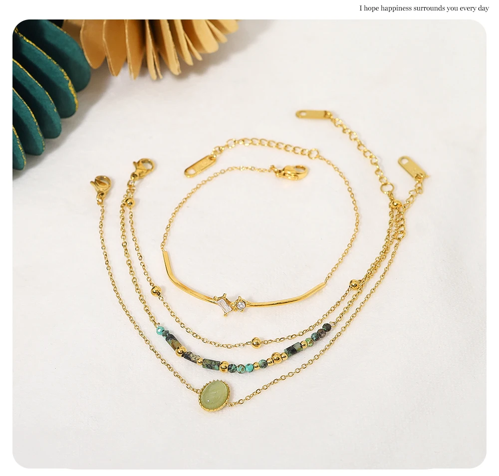 WILD & FREE Pulsera femenina de acero inoxidable de piedra natural Bohemia encanto retro regalo de joyería dorada