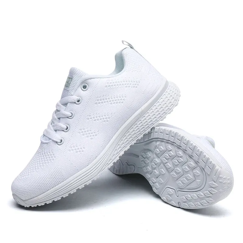 Zapatos informales para mujer, zapatos planos de malla transpirables a la moda, calzado blanco para mujer